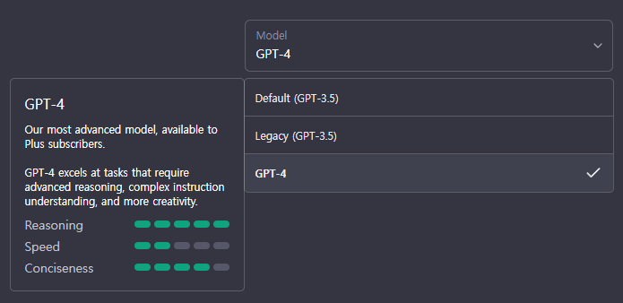 새삥 GPT 4입니다. 접속을 하게되면 GPT 3.5와 인터페이스는 거의 같습니다.